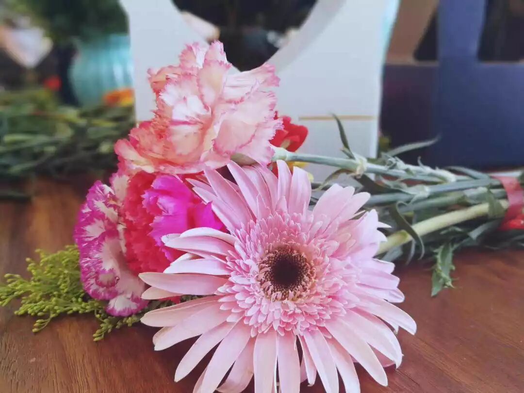 整个活动最精彩、最令人期待的环节是由女同胞们DIY一篮属于自己的花束,一支支粉玫瑰、康乃馨、菊梗、非洲菊,经过女同胞们的巧手修枝剪叶、搭配色彩,细致地置入花篮,一篮篮错落有致、色彩鲜艳、造型各异的插花作品展现在大家面前,寄托着大家对美的理解和对幸福的感悟。